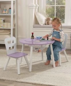 KidKraft Table Ronde En Bois Coloris Lavande Pour Enfant Et 2 Chaises