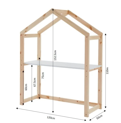 Bureau évolutif cabane enfant TINY – Structure en MDF et bois massif de pin – Revêtement mélaminé blanc – Dimensions : L120 x P50 x H152,5cm