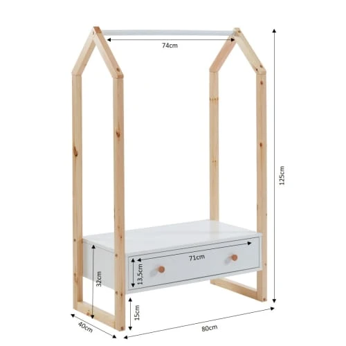 Fabriqué à partir de pin massif, ce matériau lui apporte cachet et authenticité. De plus, son coloris blanc s’adaptera aussi bien à une chambre de fille que de garçon.