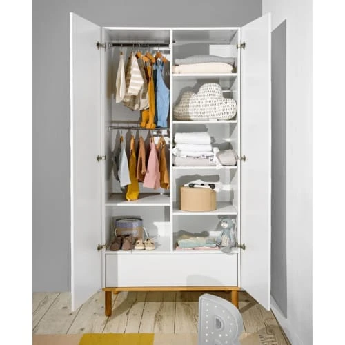 Proposée par Bellamy, la jolie armoire 2 portes Toteme Botanic, avec ses lignes minimalistes et sa décoration feuillages, propose un large choix de rangement.Caractéristiques produitMarque : BellamyFabrication européenneCouleur : Bois et blancMatériaux : Matériaux : Panneaux MDF – Pied en bois de chêne – Peintures non-allergène, répondant aux normes européennesArmoire : 2 portes – 1 tiroir – 1 étagère ajustable et 2 penderies – 4 étagères ajustables – Ouverture Push to Open – Système de fermeture silencieusePoids et dimensions : armoire 2 portes : 94 kg – 90 x 50 x 200 cmConditionnement : produits livrés, à monter, avec notice incluse.Produits Bellamy garantis 24 mois
