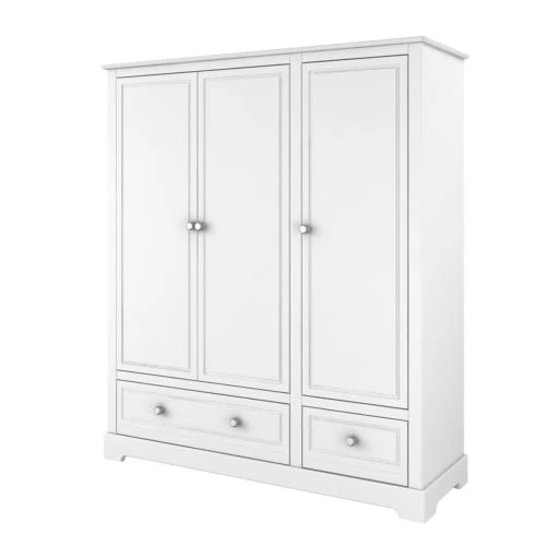 Signée par Bellamy, la belle armoire 3 portes et 2 tiroirs offre à la chambre de votre enfant, de nombreux rangements.Caractéristiques produitMarque : BellamyFabrication européenneCouleur : Blanc – poignées argentéesMatériaux : Panneaux MDF et stratifiés – Peintures non-allergène, répondant aux normes européennesArmoire : 3 portes – 2 tiroirs – 2 grandes étagères – 1 grande penderie – 4 étagères dont 3 ajustables – Tiroirs avec fermeture silencieusePoids et dimensions : armoire 3 portes : 114 kg – 146 x 52 x 174 cmConditionnement : produits livrés, à monter, avec notice incluse.Produits Bellamy garantis 24 mois