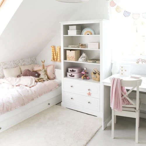 Offrez un coin lecture chaleureux et élégant, grâce à la bibliothèque Marylou, de Bellamy. Pour ranger livres, décorations, et même jouets.Caractéristiques produitMarque : BellamyFabrication européenneCouleur : BlancMatériaux : Panneaux MDF et stratifiés – Peintures non-allergène, répondant aux normes européennesBibliothèque : 3 étagères dont 1 ajustable – 2 tiroirs – Tiroirs équipés du système de fermeture silencieusePoids et dimensions : bibliothèque : 61 kg – 95 x 41 x 174 cmConditionnement : produits livrés, à monter, avec notice incluse.Produits Bellamy garantis 24 mois