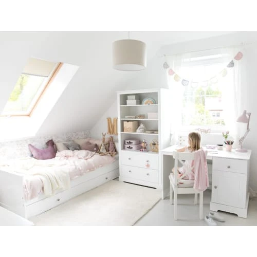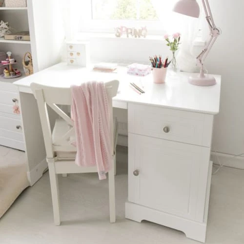 Le bureau Marylou, de la marque Bellamy, offre un espace bureau cosy et agréable pour votre enfant ou encore, votre adolescent.Caractéristiques produitMarque : BellamyFabrication européenneCouleur : BlancMatériaux : Panneaux MDF et stratifiés – Peintures non-allergène, répondant aux normes européennesBureau : 1 porte avec 1 étagère réglable en hauteur -1 tiroir – Tiroirs équipés du système de fermeture silencieusePoids et dimensions : bureau 1 tiroir 1 porte : 43 kg – 122 x 60 x 77 cmConditionnement : produits livrés, à monter, avec notice incluse.Produits Bellamy garantis 24 mois