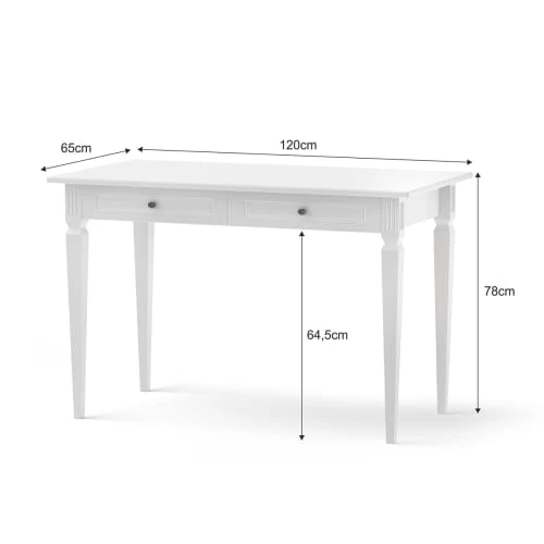 De la marque Bellamy, ce joli bureau Ines Blanc, sera parfait dans la chambre de votre enfant, de votre adolescent et dans n’importe quelle pièce.Caractéristiques produitMarque : BellamyFabrication européenneCouleur : BlancMatériaux : Panneaux MDF et stratifiés – Peintures non-allergène, répondant aux normes européennesBureau : 2 tiroirs – Fermeture silencieusePoids et dimensions : bureau 2 tiroirs : 28 kg – 120 x 65 x 78 cmConditionnement : produits livrés, à monter, avec notice incluse.Produits Bellamy garantis 24 mois