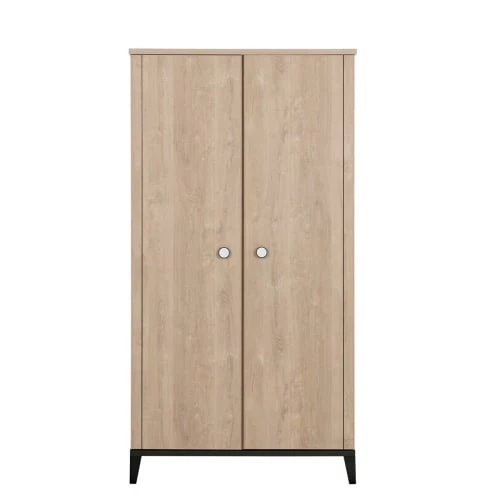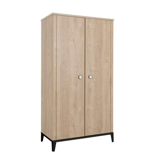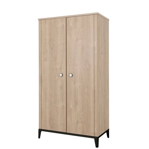 Un rainurage blanc habille élégamment la façade chêne blond. Les pieds et le plateau inférieur sont colorés en blanc pour apporter un peu de douceur.
