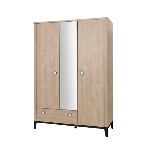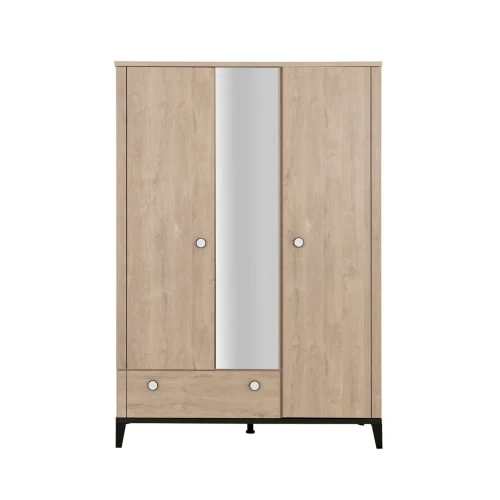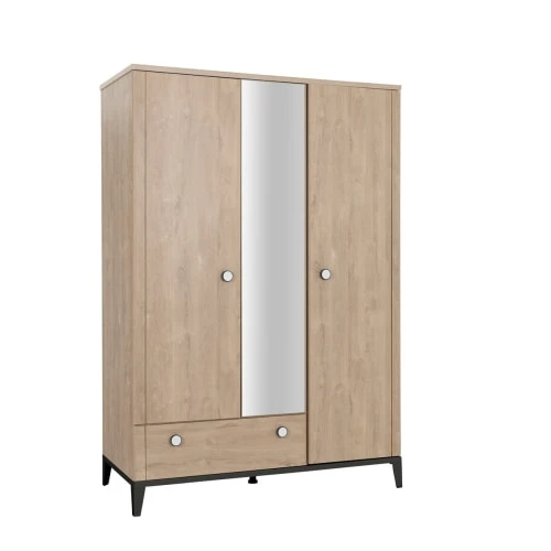 Avec ses dimensions généreuses de 195 cm de hauteur sur 136 cm de large et 58 cm de profondeur, l’armoire Marcel dispose de trois compartiments.