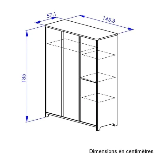 Afin de pouvoir ranger tous les vêtements de bébé, cette armoire multifonction possède différents espaces de rangement. Dansla partiependerie, derrière la double porte se cachent une grande étagère et deux tubes penderie. Dans la partielingère, se trouvent trois étagères.