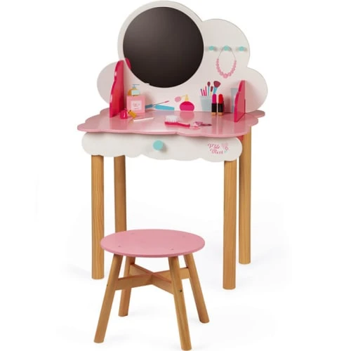 Coiffeuse en bois avec accessoires, un jouet d’imitation de la marque Janod. Référence J06553.