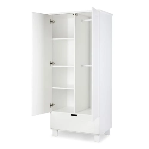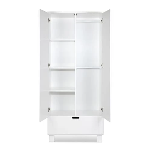 Armoire 2 portes 1 tiroir Klups, doucement, bébé fait dodo, pas de panique grâce à la fermeture silencieuse de l’armoire d’Iwo, il n’y a aucun risque, que votre enfant se réveille.Caractéristiques produitMarque : KlupsCollection : IwoFabrication EuropéenneMatériaux : Peinture à base d’eau – Panneaux MDF et agglomérésCouleurs : BlancCaractéristiques : Armoire : 2 portes – 1 tiroir – Côté gauche : 3 étagères – Côté droit : 2 penderies – Portes et tiroir avec fermeture silencieuse Portes avec ouverture “Push to Open”Poids et dimensions armoire : 74 kg – 82 x 53 x 185 cmEspace entre les étagères (à partir du bas) : 33-33-33-42 cmIntérieures du tiroir pour l’armoire : 70 x 44 x 15 cmConditionnement : Meuble livré, à monter, avec notice incluse.Garantie 24 mois