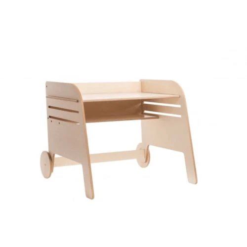 Ce bureau évolutif en bois peut se régler sur 3 niveaux de hauteur pour s’adapter à la taille de l’enfant. Grâce à ses roues, vous pouvez le déplacer facilement d’une pièce à l’autre si besoin.