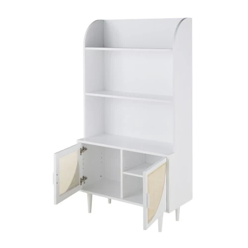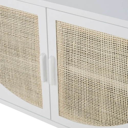 Portes : panneaux de fibres de moyenne densité coloris blanc, renforts en pin et cannage en rotin tressé