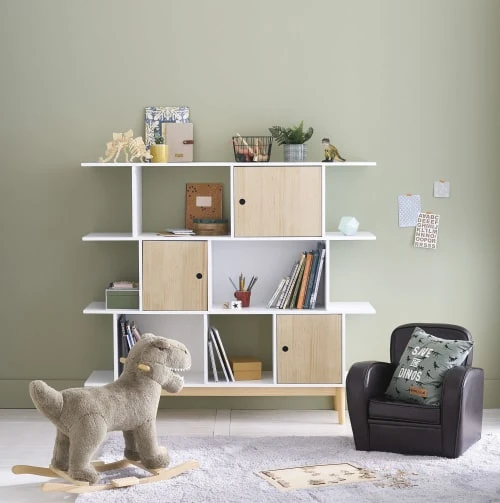 Esthétique et fonctionnelle, labibliothèque 3 portes blanche HAPPYpropose de nombreux rangements pour stocker tous les livres et objets préférés de votre bambin. Alternant les espaces ouverts et fermés, cette bibliothèque blanche pourra meubler une chambre de bébé et accueillir de la petite déco, et ses premiers livres. Le détail déco : les portes qui contrastent joliment avec le blanc.