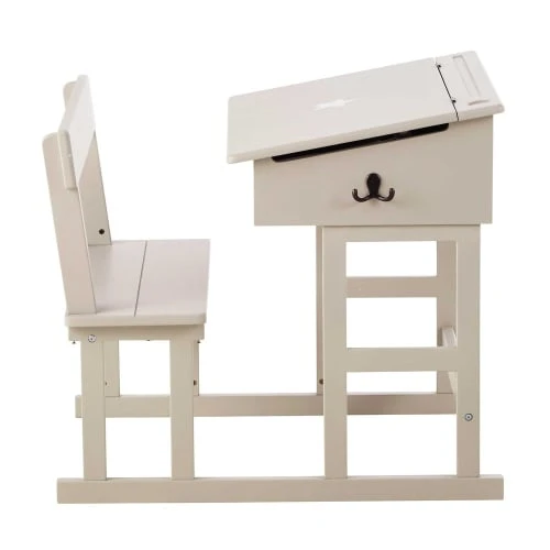 Fidèle au design d’autrefois, ce bureau enfant taupe imprimé étoile blanche PUPITREravira vos petits écoliers en herbe ! Remis au goût du jour, ce bureau enfant pourra accueillir tous ses cahiers et crayons à l’intérieur du plateau. Pratique pour accrocher son cartable, ce bureau possède un crochet en métal de chaque côté. Le détail déco : la petite étoile imprimée sur le plateau. Vous aimerez son coloris sobre et neutre qui se mariera facilement à différents styles de déco.