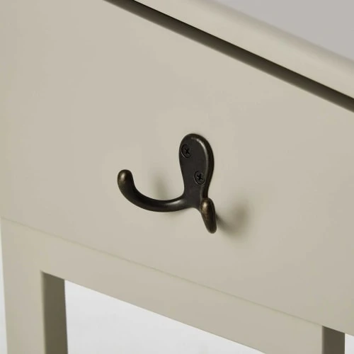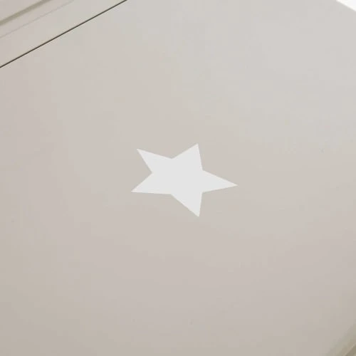 Finition : peinture à l’eau coloris taupe avec motif étoile blanche sur le plateau, vernis à l’eau mat