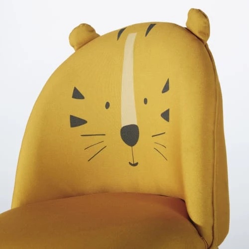 Revêtement : tissu 100% polyester, coloris moutarde clair avec motif tête de tigre