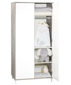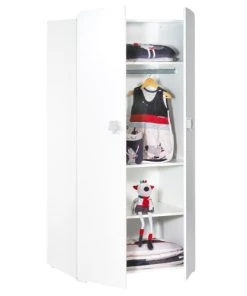 BabyPrice Armoire 2 Portes Bébé 175x85x56cm En Mélamine Blanc