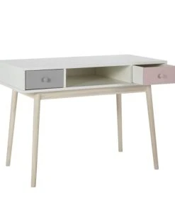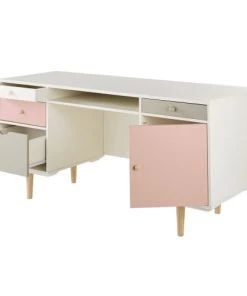 Maisons Du Monde Bureau Vintage Blanc 2 Tiroirs Gris Et Rose