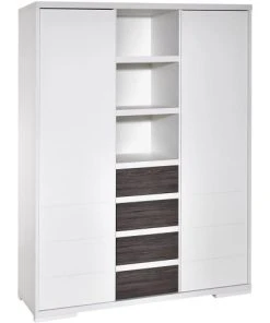 Armoire 2 portes MAXX FLEETWOOD Caractéristiques: – 2 portes avec système de fermeture «soft close» – 4 tiroirs «push-to-open» – 4 étagères intérieures – 3 étagères extérieures – 2 tringle à vêtements – Coloris: blanc et bois Fleetwood – Matières: panneaux de particules et mélamine – Les finitions sont laquées – Conforme aux normes de sécurité européennes EN 12221 – Dimensions: H : 191 cm L : 139 cm P : 53 cm Garantie 2 ans. Les accessoires ou les textiles pouvant apparaître sur les photos ne sont pas fournis.