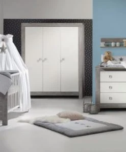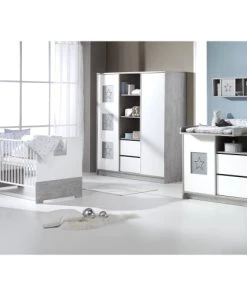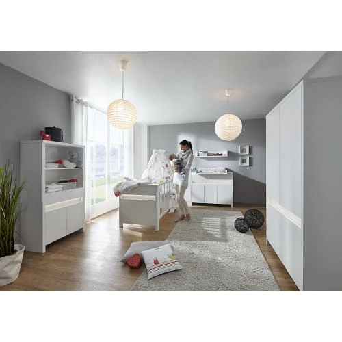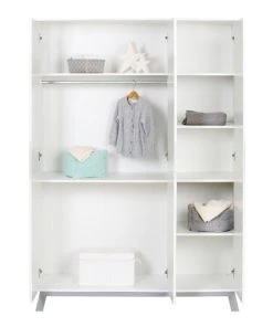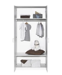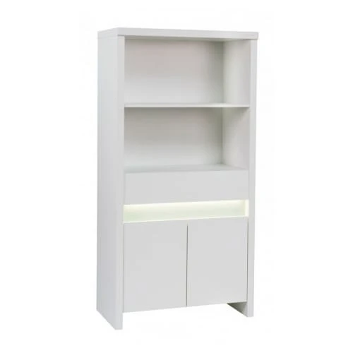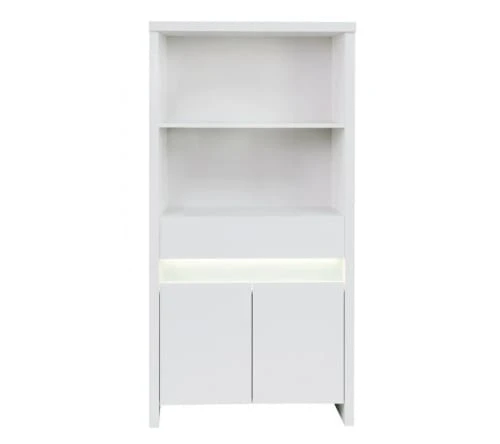 2 niches ouverts, 2 portes dotées du system de fermeture douce, 1 étagère H: 153 cm L: 77cm P: 41cm Matière: décor mélaminé Finitions laquées mat Couleur: blanc et illumination blanche Garantie 2 ans