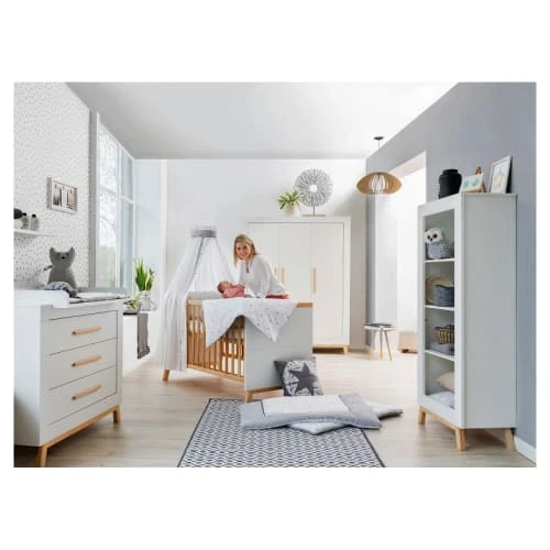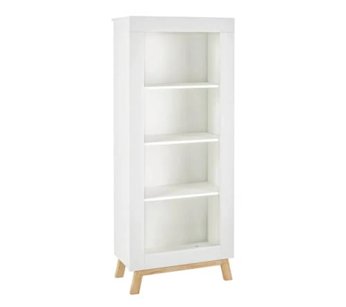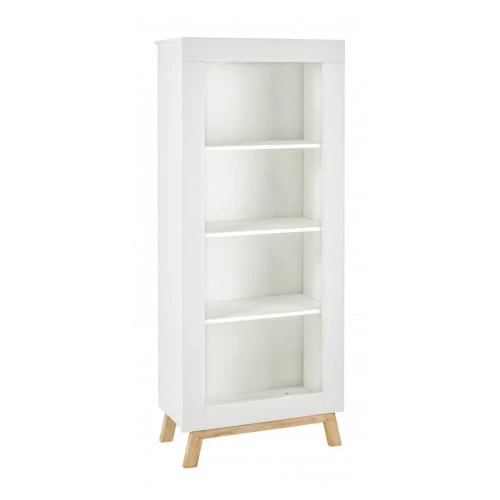 Étagère Suomi Pin / huilés, 4 compartiments ouverts, socle hêtre massif huilé naturel H: 165 cm B: 68 cm P: 37 cm Modèle: Miami Blanc