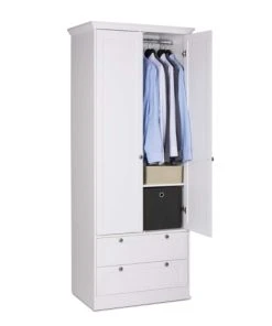 Terre De Nuit Armoire 2 Portes 2 Tiroirs En Bois Blanc 200cm