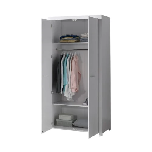 L’armoire 2 portes Erik signé de la marque Vipack trouvera facilement sa place dans la chambre de votre enfant.Caractéristiques produitMarque : VipackGamme : ErikMatériaux : Panneaux MDF et Pin MassifCouleur : BlancProduit : Armoire 2 portes1 penderie2 étagèresPoids : 78 kgDimensions : 99.5 x 57.5 x 250.5 cmGarantie : 24 mois