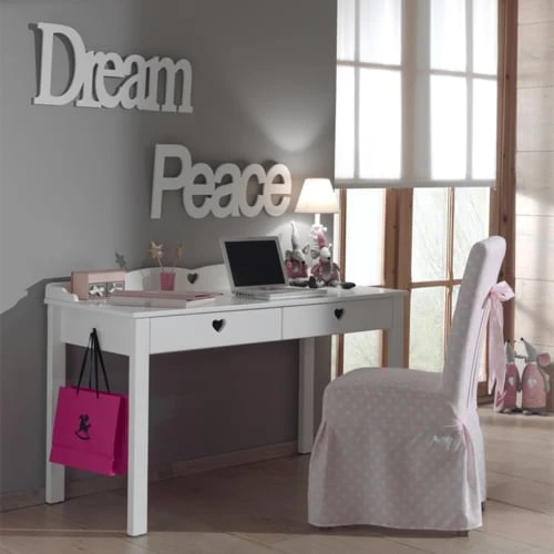 Voici le bureau parfait pour votre enfant qui commence l’école. Vipack a imaginé pour la gamme Amori un bureau avec deux espaces de rangement et un crochet pour s’adapter parfaitement aux besoins de votre bambin.Caractéristiques produitMarque : VipackGamme : AmoriCouleur : BlancMatériaux : Panneaux MDF et Pin MassifProduit : Bureau2 tiroirs1 crochetFermeture en douceurPoids : 25 kgDimensions : 130 x 60 x 84.5 cmGarantie : 24 mois
