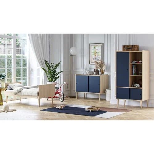 Signée de la marque Vox, l’armoire 1 porte provient de la collection Retro. Le design vintage inspiré des années 70 des meubles de la gamme Retro leurs permet de s’accorder facilement avec tous le sintérieurs.Caractéristiques produitMarque: VoxFabrication européenneMatériaux : Panneaux de particules stratifié, pieds en boisMeuble de couleur boisArmoire 1 porte : 1 penderie à gauche / 3 étagère à droite / en bas 2 portes coulissante avec beaucoup d’espace pour ranger tous les essentiels de bébéArmoire 1 porte équipée du silent système : amortit automatiquement la porte qui se ferme et la ferme en douceurArmoire: 54 kgArmoire : 80 x 51 x 164.5 cmMeuble Vox livré à monter, avec notice incluse.Produits Vox garantis 24 Mois.2 jeux de portes complets inclus : un de couleur bois, le deuxième de couleur bleu