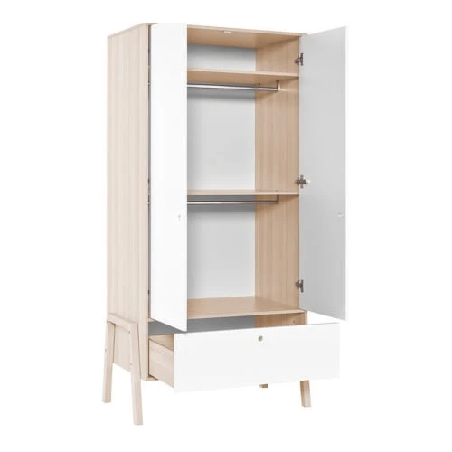 Signée de la marque Vox, l’armoire 2 portes Spot blanche, au design et à l’élégance de type scandinave, a été fabriquée à partir de pin massif et mélaminé haut de gamme pour apporter à la chambre de bébé la qualité indispensable à son bien-être.Caractéristiques produitMarque: VoxFabrication européenneMatériaux: Pin massif et mélaminé haut de gammeArmoire : 2 portes – 1 tiroir – 2 niches de rangement – 2 penderiesPoids et dimensions armoire : 78kg – 100 x 60 x 202.5 cmConditionnement : produits livrés, à monter, avec notice incluse.Produits Vox garantis 24 Mois.