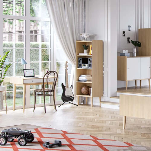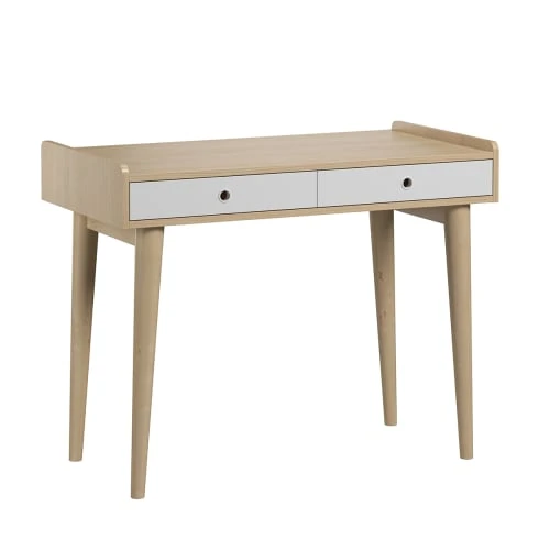Conçu par la marque Vox, le bureau issu de la collection Retro possède 2 tiroirs très pratique. Ne vous y trompez pas, c’est sur ce bureau élégant au design vintage, que votre enfant esquissera les dessins qui trôneront sur votre frigo !Caractéristiques produitMarque: VoxFabrication européenneMatériaux : Panneaux de particules stratifié, pieds en boisMeuble de couleur boisBureau muni de 2 tiroirsBureau: 28 kgBureau : 96 x 51 x 78 cmMeuble Vox livré à monter, avec notice incluse.Produits Vox garantis 24 Mois.2 jeux de portes complets inclus : un de couleur bois, le deuxième de couleur blanc