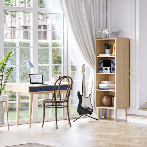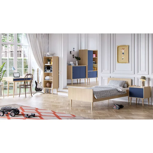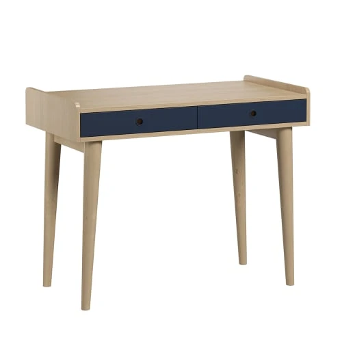 Idéal pour toutes les chambres d’enfants, le bureau 2 tiroirs Vox Retro est un indispensable de la chambre d’enfant. Pratique et design, il dispose ici d’un 2ème jeu de façades permettant à votre enfant de personnaliser son bureau selon ses envies.Caractéristiques produitMarque: VoxFabrication européenneMatériaux : Panneaux de particules stratifié, pieds en boisMeuble de couleur boisBureau muni de 2 tiroirsBureau: 28 kgBureau : 96 x 51 x 78 cmMeuble Vox livré à monter, avec notice incluse.Produits Vox garantis 24 Mois.2 jeux de portes complets inclus : un de couleur bois, le deuxième de couleur bleu