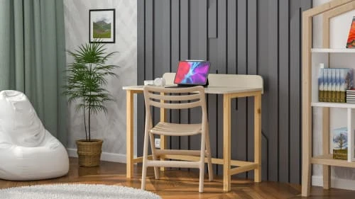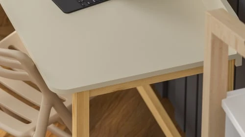 Clara Natural est un bureau scandinave minimaliste pour une chambre d’enfant ou d’adolescent, qui offrira un endroit confortable pour étudier. Il est doté d’un plateau pratique en panneau stratifié de haute qualité, posé sur des pieds en bois de pin. La structure simple et le design minimaliste font du bureau un complément parfait à tout intérieur. Le plateau de bureau est disponible en 7 couleurs uniques, de sorte que le meuble peut être assorti à n’importe quelle couleur d’intérieur. Tous les bords du plateau ont été arrondis.