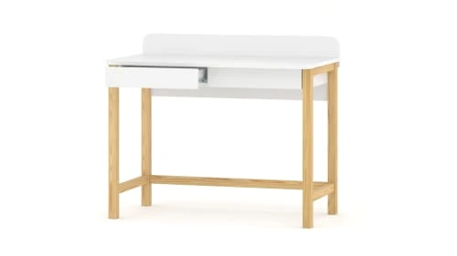 Le bureau moderne et minimaliste Rico vous permettra de créer un endroit confortable pour étudier dans une chambre d’enfant ou d’adolescent. Il est doté d’un plateau pratique et de deux tiroirs spacieux en panneau stratifié de haute qualité, qui seront un endroit idéal pour les fournitures scolaires. Le bureau repose sur des pieds en bois de pin massif. La structure simple et le design minimaliste font du bureau un complément parfait à tout intérieur. Tous les bords du plateau ont été arrondis.