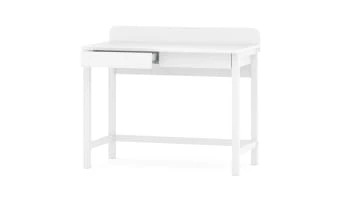 Le bureau moderne et minimaliste Rico vous permettra de créer un endroit confortable pour étudier dans une chambre d’enfant ou d’adolescent. Il est doté d’un plateau pratique et de deux tiroirs spacieux en panneau stratifié de haute qualité, qui seront un endroit idéal pour les fournitures scolaires. Le bureau repose sur des pieds en bois de pin massif. La structure simple et le design minimaliste font du bureau un complément parfait à tout intérieur. Tous les bords du plateau ont été arrondis.
