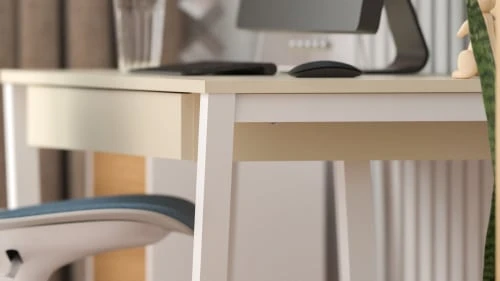 Le bureau pratique est équipé d’un plateau de table fonctionnel et d’un tiroir spacieux pour ranger les fournitures scolaires.