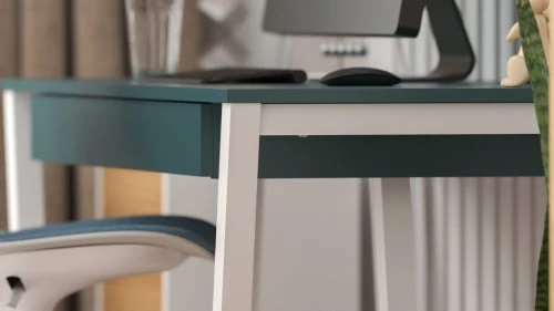 Le bureau pratique est équipé d’un plateau de table fonctionnel et d’un tiroir spacieux pour ranger les fournitures scolaires.