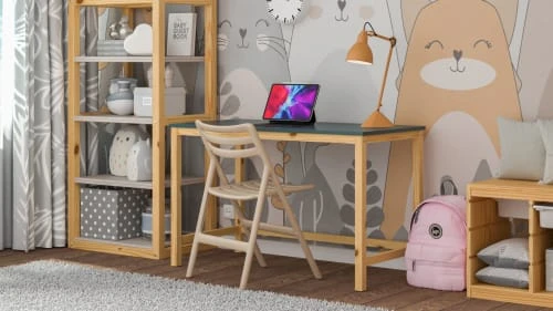 Son grand plateau offrira un espace d’étude confortable et il accueillera facilement toutes sortes de fournitures scolaires.