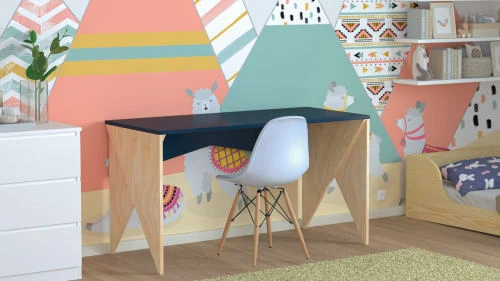 Le bureau est fait de panneau stratifié de haute qualité et de contre-plaqué de pin. Une fabrication solide et une attention aux détails garantissent une utilisation à long terme du bureau.