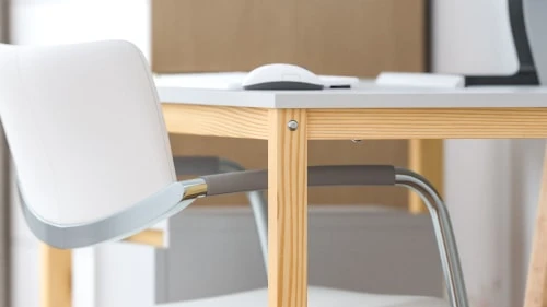 Le bureau est fait de panneau stratifié de haute qualité et de bois de pin.