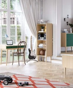 Le bureau pratique est équipé d’un plateau de table fonctionnel et d’un tiroir spacieux pour ranger les fournitures scolaires.