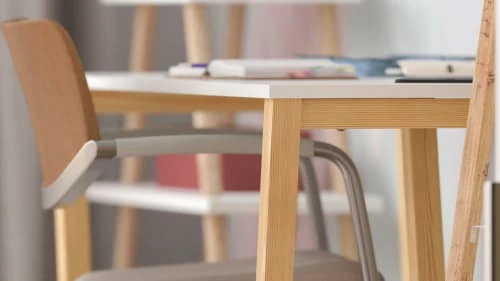 Le bureau solide est fait de panneau stratifié de haute qualité et de bois de pin. Une fabrication solide et une attention aux détails garantissent une utilisation à long terme du bureau.