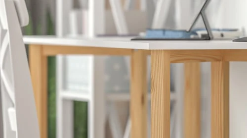 Le bureau est fait de panneau stratifié de haute qualité et de bois de pin. Une fabrication solide et une attention aux détails garantissent une utilisation à long terme du bureau.