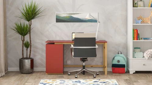 Le plateau spacieux et le caisson pratique offrent beaucoup d’espace pour ranger les fournitures scolaires.