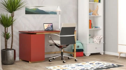 Le bureau moderne Liam avec caisson est un meuble fonctionnel conçu dans un style scandinave. Il sera parfait pour une chambre d’enfant ou d’ado, assurant un lieu d’étude pratique et confortable. Il a un grand plateau en panneau stratifié de haute qualité, monté sur une base stable en bois. Sous le plateau, il y a un caisson spacieux avec une étagère qui vous permettra de ranger livres, cahiers et autres fournitures scolaires. Le grand avantage du bureau Liam est la possibilité de peindre le plateau dans l’une des 7 couleurs disponibles dans le configurateur de produit.