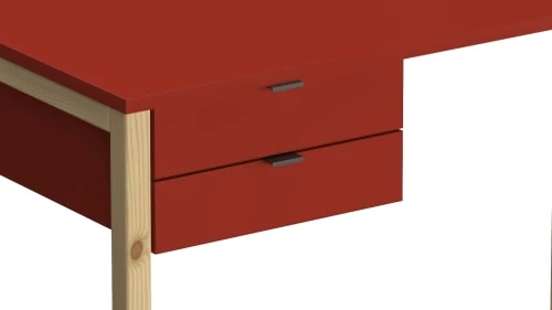 Le bureau est équipé d’un plateau fonctionnel et de deux tiroirs pratiques pour ranger les fournitures scolaires.