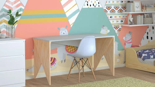 Le bureau solide est fait de panneau stratifié de haute qualité et de bois de pin. Une fabrication solide et une attention aux détails sont la garantie d’une utilisation à long terme du mobilier.