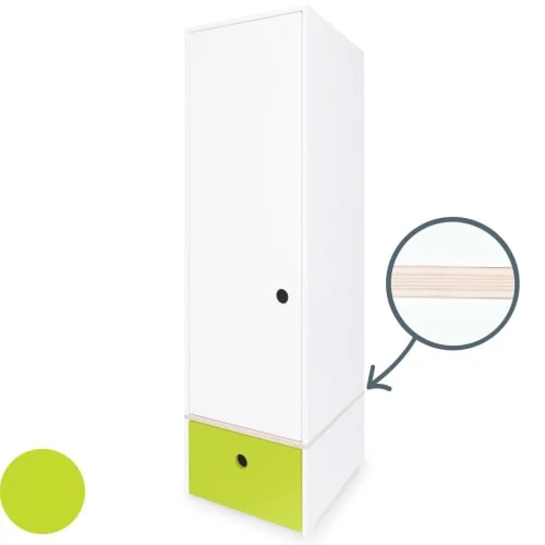 L’armoire enfant 1 porte COLORFLEX est équipée d’une grande porte et d’un tiroir, séparés par une planche de contreplaqué de bouleau. Le système de fermeture “Soft Close”, doux et silencieux, assure un maximum de confort et de sécurité.