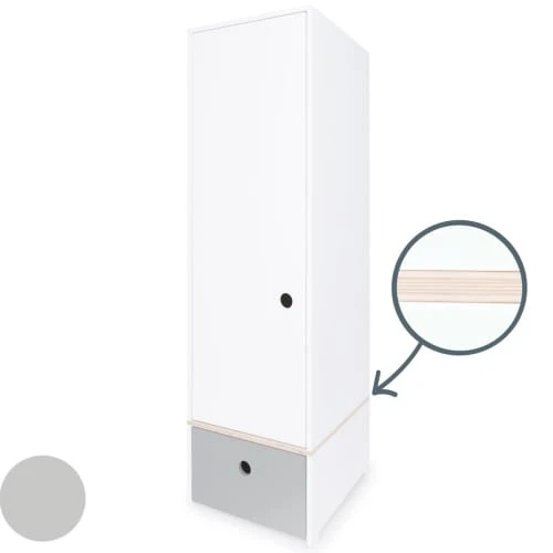 L’armoire enfant 1 porte COLORFLEX est équipée d’une grande porte et d’un tiroir, séparés par une planche de contreplaqué de bouleau. Le système de fermeture “Soft Close”, doux et silencieux, assure un maximum de confort et de sécurité.