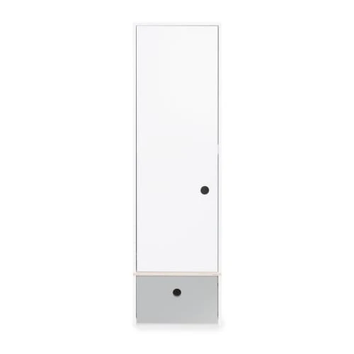 L’armoire enfant 1 porte est vendue avec 3 étagères réglables en hauteur et 1 tringle. Le sens d’ouverture des portes est au choix : gauche ou droite. Pour les poignées, deux positions possibles : basse ou haute.