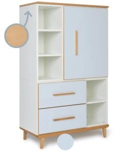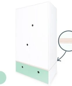 L’armoire enfant 3 portes COLORFLEX est équipée de 3 grandes portes et de 2 tiroirs, séparés par une planche de contreplaqué de bouleau. Le système de fermeture “Soft Close”, doux et silencieux, assure un maximum de confort et de sécurité.